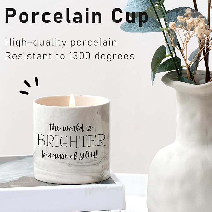 - 【Porcelain Cup】Designed in a marbled ceramic cup, fired at 1300°C for exceptional durability, this stylish container. The heartfelt message "The world is brighter because of you" is printed on the cup.