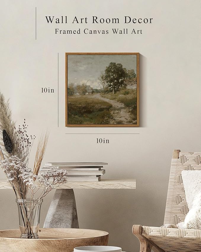 InSimSea Square Framed Canvas Wall Art, Landscape Rural Farmhouse Room Decor, Vintage Nature Classical Oil Painting Wall Prints Decor for Bathroom, Bedroom, Living Room 10"x10"