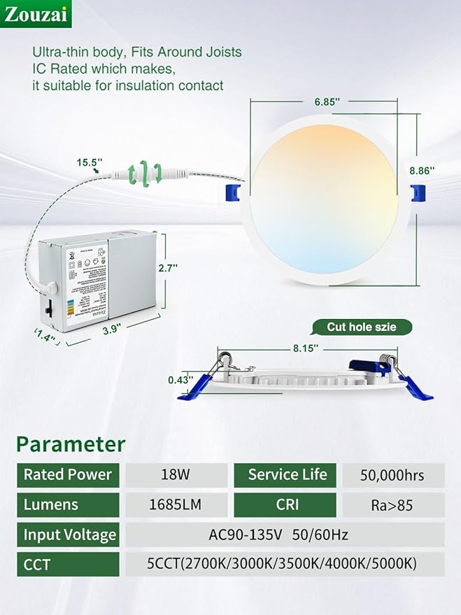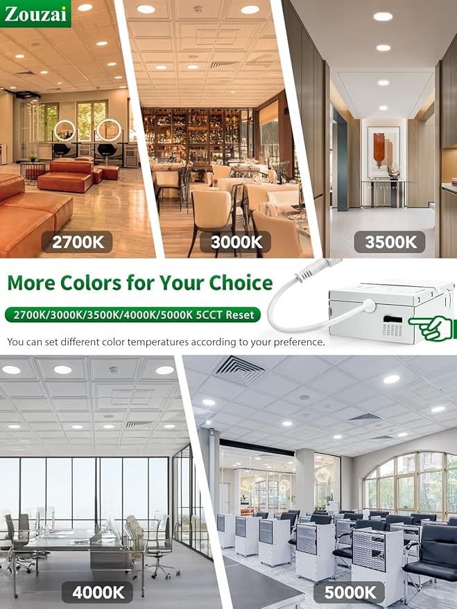 zouzai 24 Pack 8 inch 18W Eqv 150W 1620LM 5CCT Reset Ultra-Thin LED Recessed Ceiling Light with Junction Box, 2700K-5000K Selectable, Dimmable, Commercial and Home use - ETL and Energy Star Certified