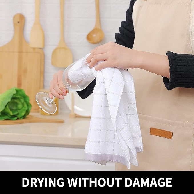 Homaxy 100% Cotton Terry Kitchen Towels(White and Light Grey, 13 x 28 Inches), Checkered Designed, Soft and Super Absorbent Dish Towels, 8 Pack