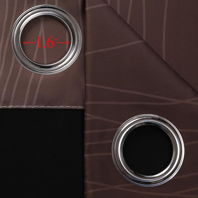 - PACKAGE INCLUDES: 2 panels per package. Each package includes two ombre blackout curtain panels of 52"W x 54"L,one set measures: 104"W x 54"L. Each curtain panel has 8 rustproof silver metal grommets on top. Each grommet inner diameter is 1.6 inch, fits most standard rods in the market. Easy to hang, and slide smoothly. These gradient blackout living room curtains are soft and smooth.