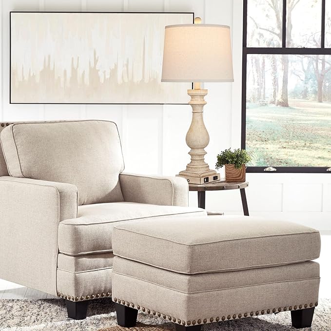 - 【Farmhouse Rustic Retro Table Lamp】- Resin bedroom lamps matches perfectly with Cylindrical oatmeal lampshade to create an elegant atmosphere,easy to fit in most decor for modern,classic,rustic,industrial,retro,nordic.Each lamp is 29'' high, 12.5'' long and 12.5'' wide, perfect for living room,bedroom,foyer,hallway,dining room,office,study and any room you like