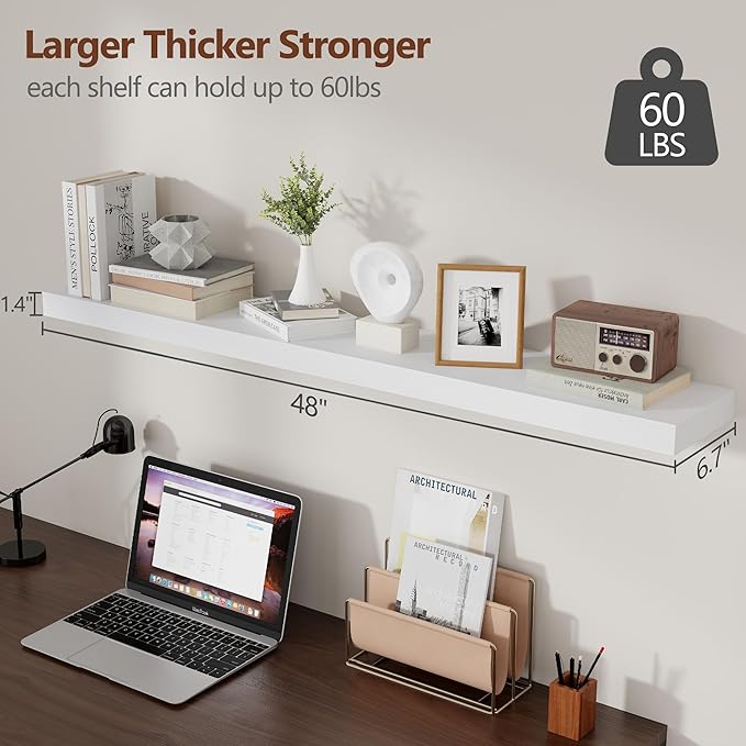 - DESIRABLE HOME DECOR - Brighten up your living space with our 48 inch white floating shelves! Move away from blank, boring walls and create a creative and eye-catching visual centerpiece