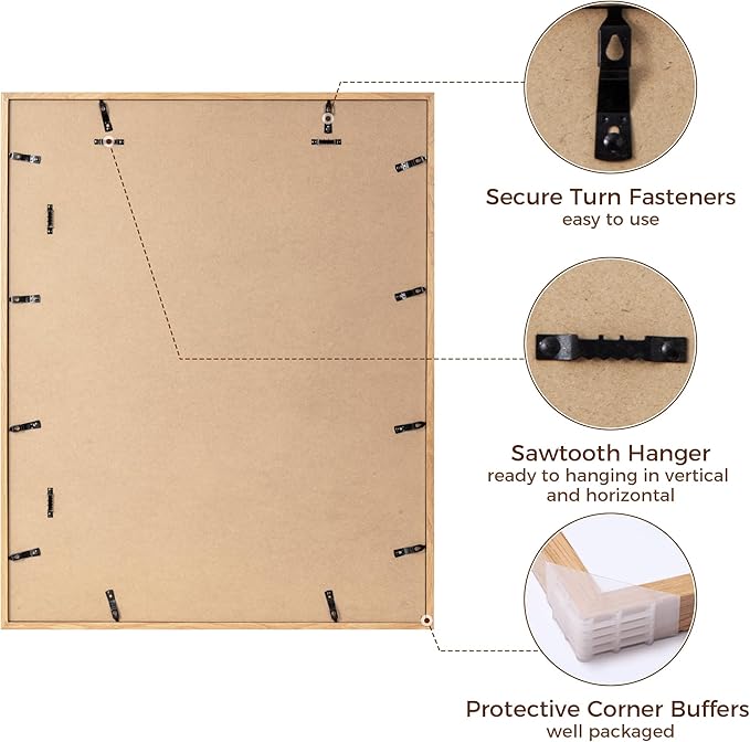 - WELL PACKAGED - Each 24"x30" picture frame is shrink-wrapped and secured with corner protectors, all of our 24x30 wood frames are packaged in custom-made corrugated boxes so your frames arrive in pristine condition.