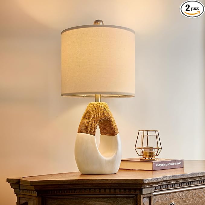 - Unique Farmhouse Table Lamps:Unique design, classical without loss of modernity, The modern bedside lamps was designed as an egg shape with hollow middle that you could carry it easily, the upper part of cotton and linen allowing you to hold it firmly, for you need light well in many place. Our nightstand lamp especially suitable as your work lamps, reading light for your bedside table and nightstand, or as an deco light on top of end tables in your living room.