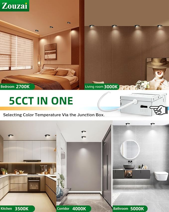 - โ ใ๐ ๐๐จ๐ฅ๐จ๐ซ ๐๐๐ฆ๐ฉ๐๐ซ๐๐ญ๐ฎ๐ซ๐ ๐๐๐ฌ๐๐ญใEasily adjust the color temperature via the slider switch on the junction box, offering 2700K (Soft White), 3000K (Warm White), 3500K (Neutral White), 4000K (Cool White), and 5000K (Daylight) for versatile lighting needs.