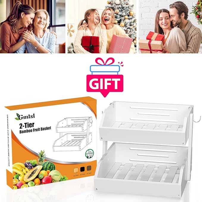 - STABLE & DURABLE: Gmtsl fruit stand is made of high-quality bamboo, strong and long-lasting. With Simple and stylish appearance, the fruit organizer keeps everything organized without taking up too much space just like bathroom toiletries, household products, pantry items.