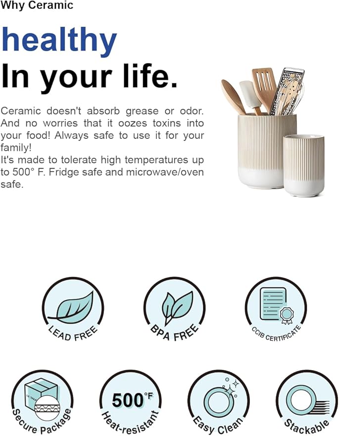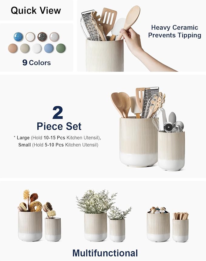 - Solid and Secure: This utensil holder for kitchen counter provides easy access to your utensils, offering a stable and relaxing experience due to its substantial weight; Crafted from premium ceramic materials, these holders are not only robust but also easy to clean; Rest assured, they will remain securely in your countertop, giving you peace of mind while using them