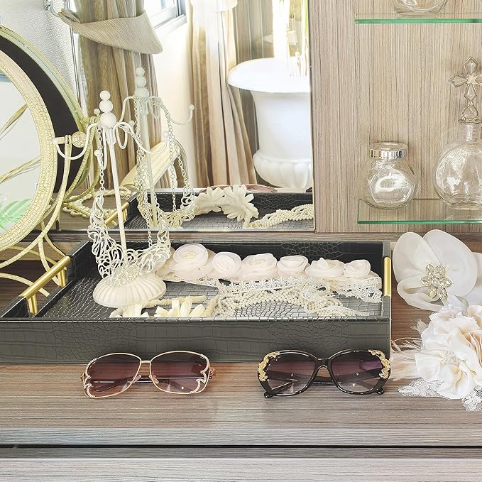 - ELEGANT AND STYLISH: Gorgeous faux alligator leather with exquisite polished gold handles brings this unparalleled looking luxury tray. The maximum suitable for all decoration styles of home or commercial premises. You can keep it in your living room, nursery, kitchen, bedroom, bathroom.