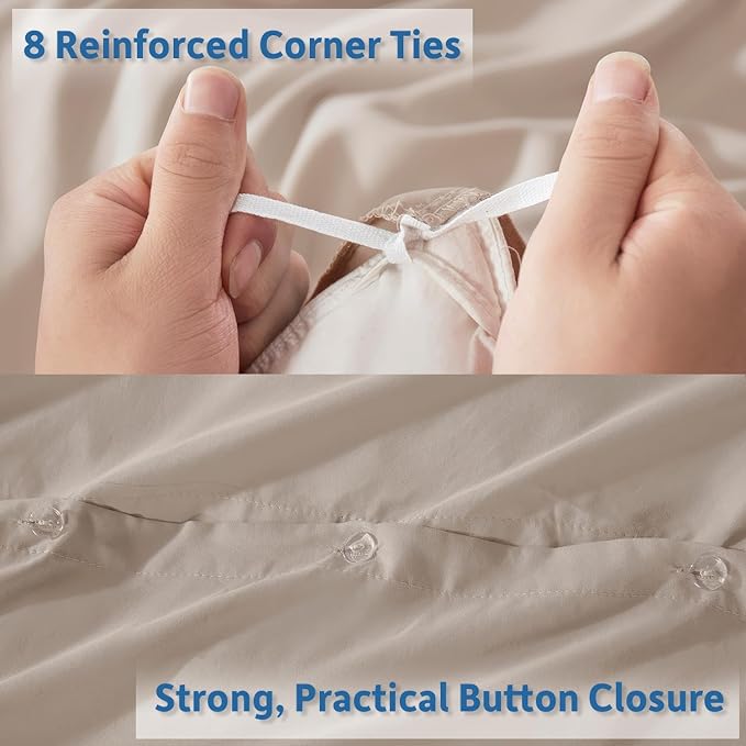 - Hotel Duvet Cover: Our microfiber duvet cover with ties includes 8 ties that keep the duvet of your choice securely attached, and practical clear button closure for a seamless look. Pillow sham features stylish 2” flange and back overlap closure.