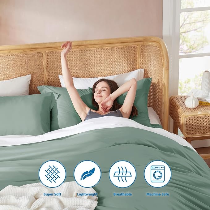 Nestl Sage Green Duvet Cover King Size - Soft Double Brushed King Duvet Cover Set, 3 Piece, with Button Closure, 1 Duvet Cover 104x90 inches and 2 Pillow Shams