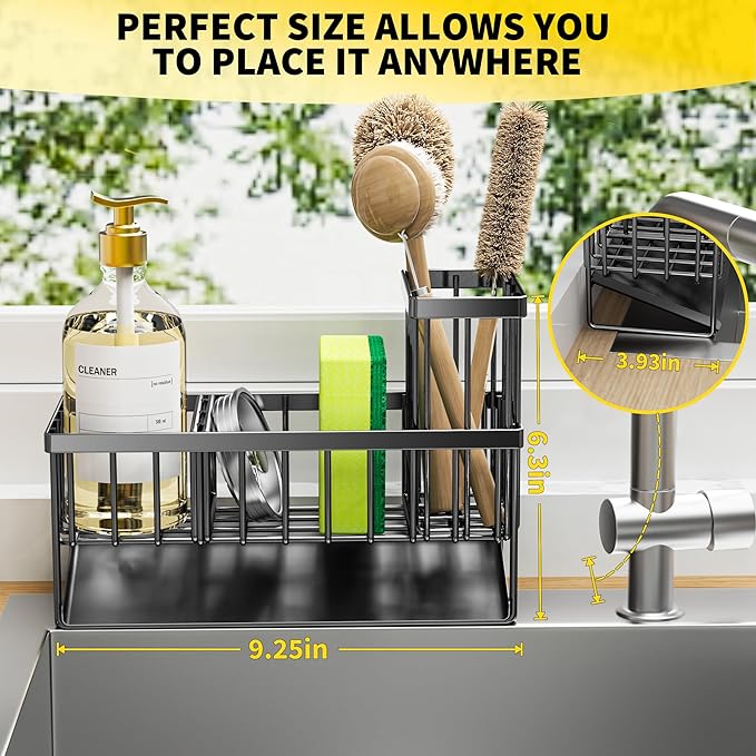 - 【REASONABLE DIVIDER DESIGN】 The sponge holder for kitchen sink ergonomic divider design allows it to have 3 separate storage spaces, Different items are placed in different areas. Make the most of every inch of space and make your kitchen look cleaner.