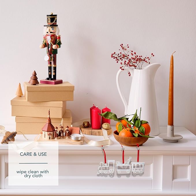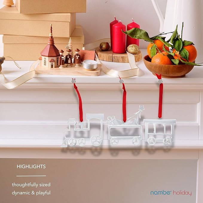- Charming Train Set Design: Mini ornament trio includes a locomotive, toy car, and caboose with silver and gold plate finishes, adding nostalgic style to trees, mantels, or festive tables.