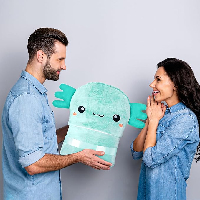 Axolotl Wearable Hooded Blanket for Adults - Super Soft Warm Cozy Plush Flannel Fleece & Sherpa Hoodie Throw Cloak Wrap - Axolotl Gifts for Women Adults and Kids