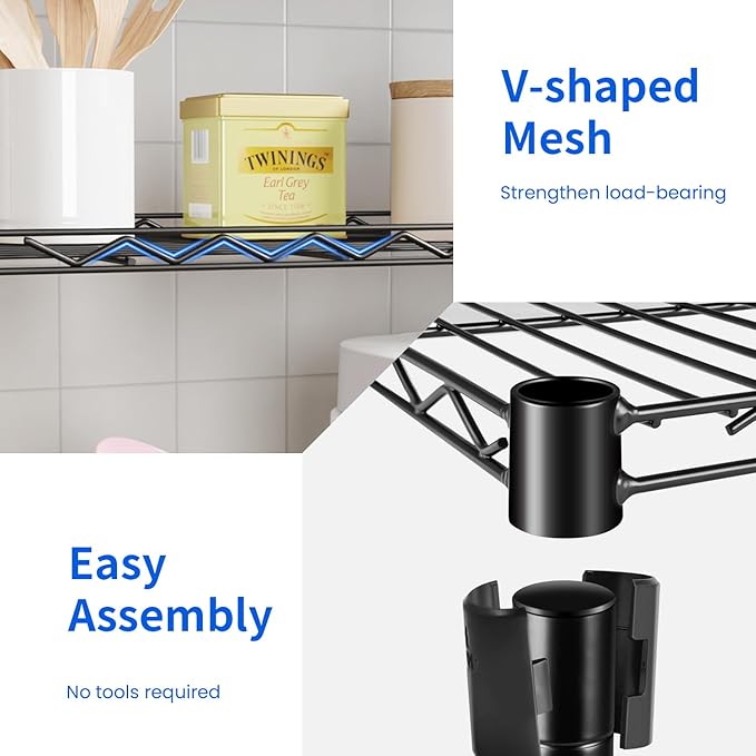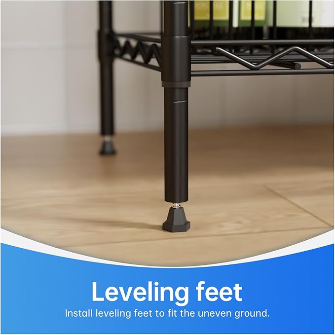 - ADJUSTABLE DESIGN FOR FLEXIBILITY: Customize shelf spacing to fit tall, bulky, or oddly shaped items, perfect for adapting your wire shelf to evolving storage and organization needs.