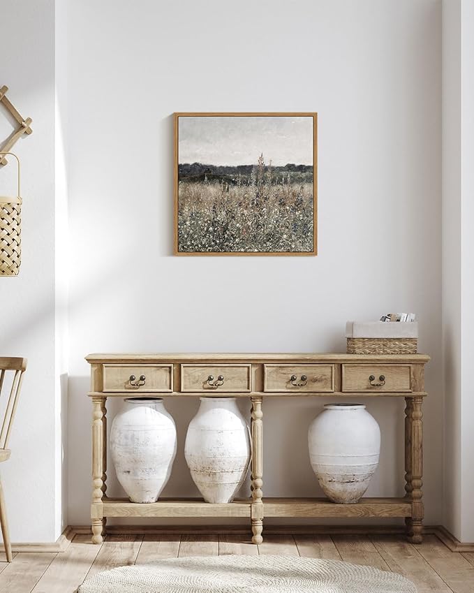 InSimSea Square Framed Canvas Wall Art, Home Decor Vintage Scenery Field Meadow Flowers Wall Art Prints, Retro Nature Floral Oil Paintings Wall Decor for Living Room Bedroom Home Bathroom 12"x12"