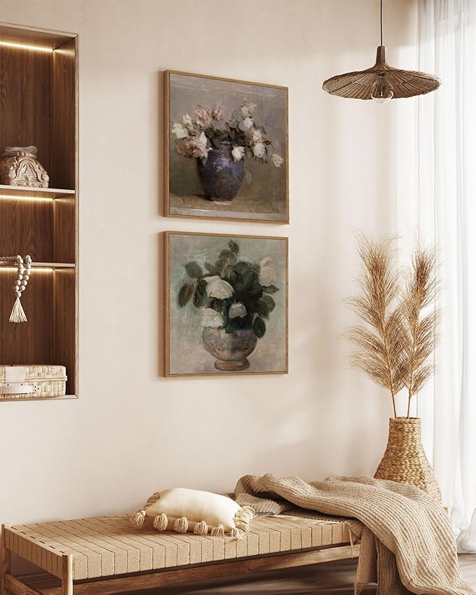 - Captivating Vintage Square Framed Wall Art: Decorate your living space with the timeless beauty of our white flowers in vase canvas oil paintings, beautifully presented in frames. If you appreciate the beauty of white blooms and wish to infuse your living space with a sense of calm and serenity, our florals in vase wall art prints are the ideal choice.
