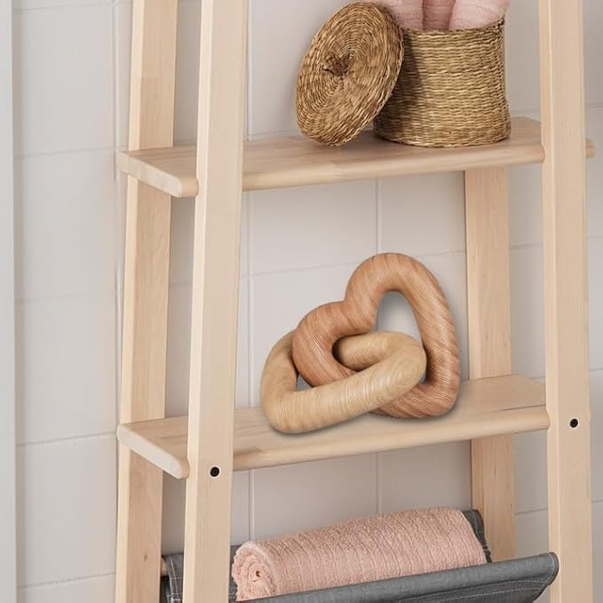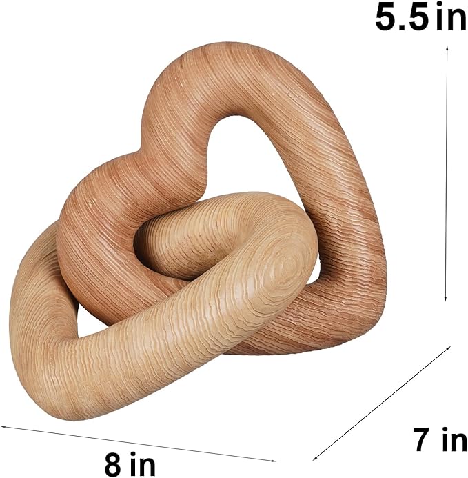 Guichifun Couple Gifts Modern Farmhouse Decor - Resin Heart Sculpture Home Wood Finish Chain Link Décor Love Statues Anniversary Wedding Gifts 8 x 7 x 5.5 Inch