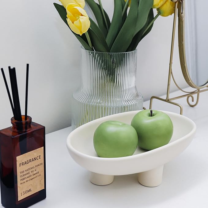 - ππππππππ πππππππ - This ceramic three-legs fruit bowl is made of high-quality handmade ceramics with uniform texture. It is not only thick, sturdy and heavy-weight, but also easy to clean. The frosted surface has a special frosted feel. The decorative fruit bowl is perfect for kitchen living room decor, coffee table decor, simple style home decor.(Size: 10.2"L x 6.5"W x 3.4"H; weight: 2.53lb).