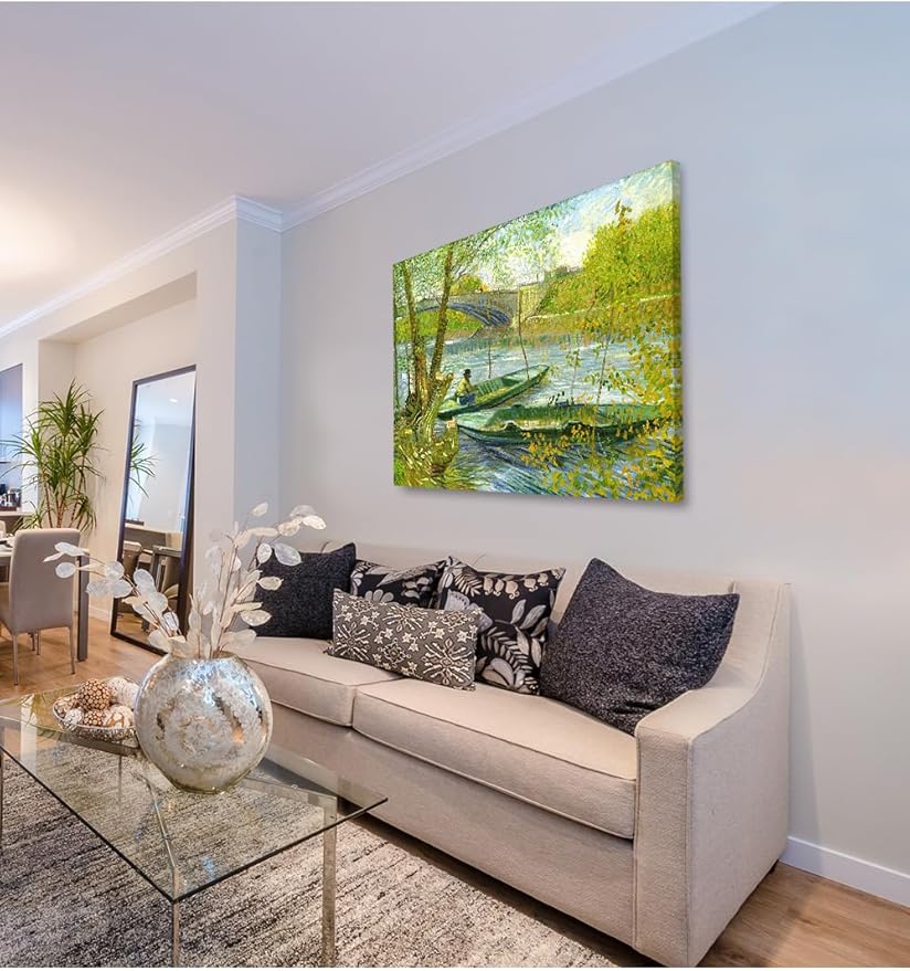 DECORARTS - Fishermen And Boats From The Pont De Clichy, Vincent Van Gogh Art Reproduction. Giclee Canvas Prints Wall Art for Home Decor 40x32