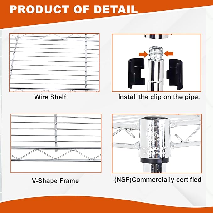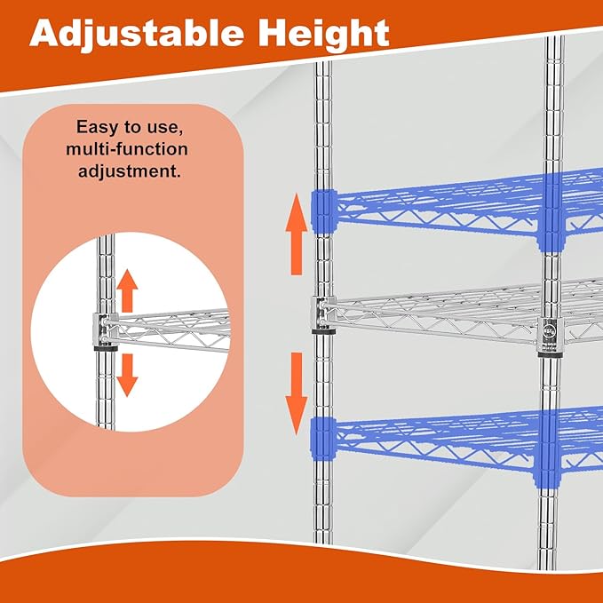 - ADJUSTABLE DESIGN FOR FLEXIBILITY: Customize shelf spacing to fit tall, bulky, or oddly shaped items, perfect for adapting your wire shelf to evolving storage and organization needs.