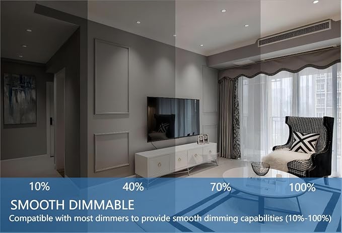 - SMOOTH DIMMABLE-Compatible with most dimmers to provide smooth dimming capabilities (10%-100%). No buzzing or flickering for maximum eye comfort