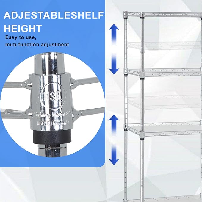 - ADJUSTABLE DESIGN FOR FLEXIBILITY: Customize shelf spacing to fit tall, bulky, or oddly shaped items, perfect for adapting your wire shelf to evolving storage and organization needs.