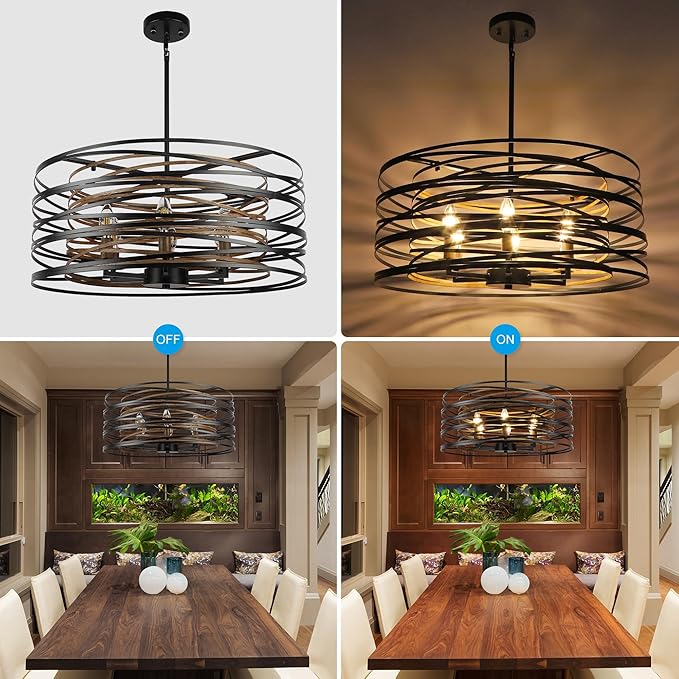 - Design: Drum light are made by highly skilled craftsmen. The classic combination of retro wood texture and black, the stylish retro double-layer drum frame design, makes this drum lighting chandelier full of rustic retro atmosphere. Perfect for dining room, living room, kitchen island, entryway, hallway, foyer, etc.