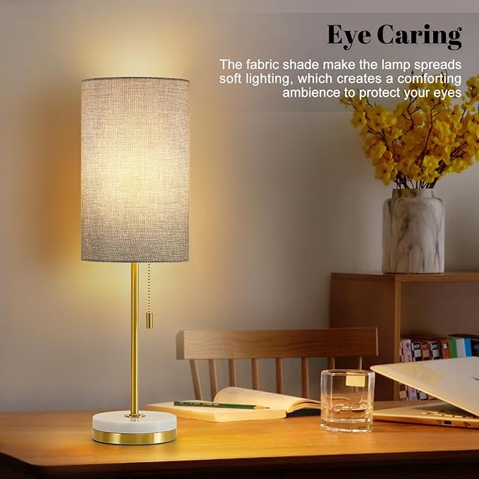 - Stable Marble & Metal Base: The small desk lamp features a heavy marble and metal base for stability, preventing wobbling. Non-slip pads add extra safety, while the thick pole keeps the shade steady—ideal for lamps for night stands or workspaces