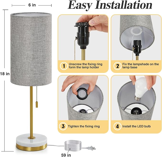 - Easy Pull-Chain Operation: With a simple pull-chain switch, this nightstand lamp is effortless to use. The E26 socket supports various bulb styles, letting you personalize your small lamp’s look