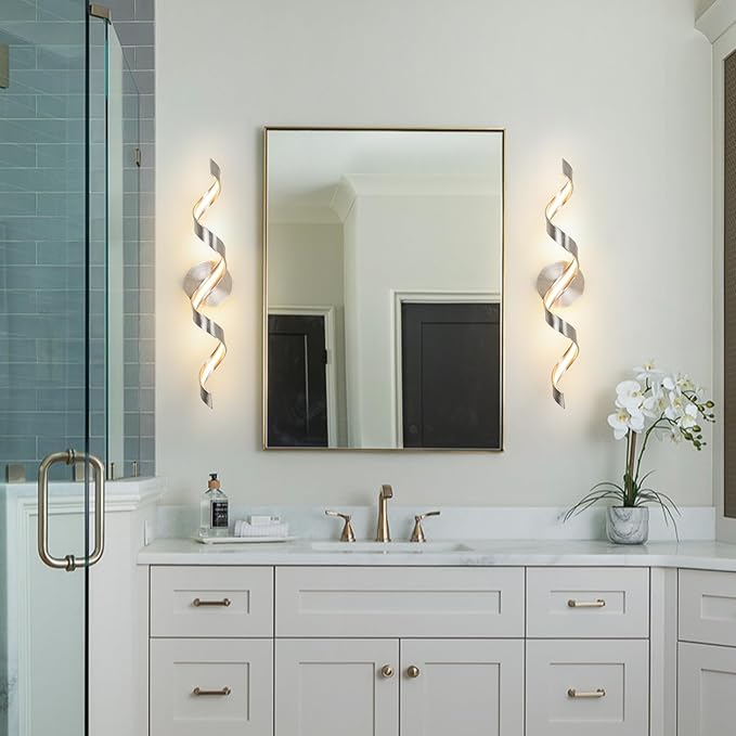 Dimmable Modern LED Bathroom Vanity Light, 24 inch Spiral Design Brushed Nickel Bathroom Light Fixtures Over Mirror, Bath Wall Sconces Lighting for Living Room Bedroom 3000K