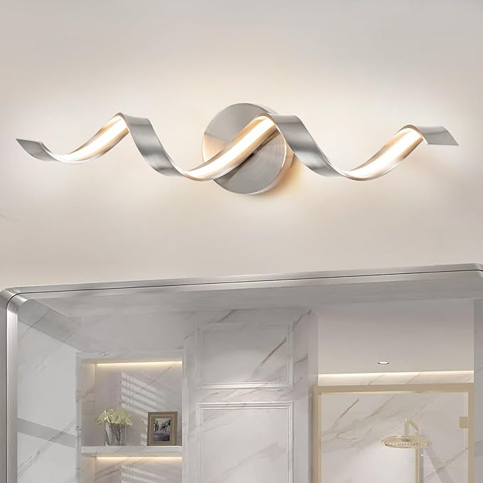 - 【Modern & Unique Design】Not an ordinary one-line modern bathroom vanity lights, but a curved design that can add more chic decor to your modern space. Perfect for your bathroom, living room, bedroom, powder room, hallway and bathtub, etc.