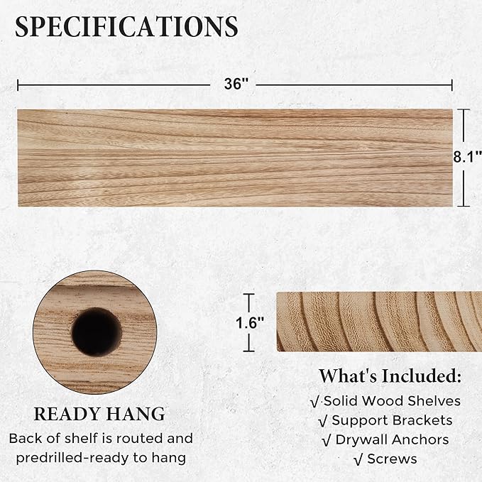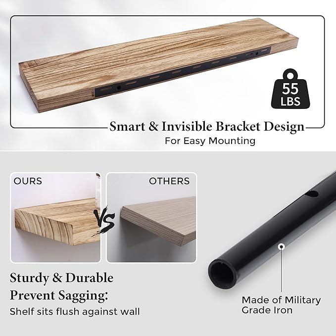 - Sturdy Support: Our high quality Solid Paulownia Wood construction ensures each shelf can hold up to 55 lbs, ensuring your items never sag or fall. Plus, the concealed mounting hardware gives the appearance of floating shelves.
