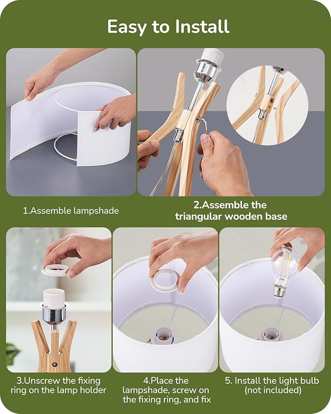 - [Stable & Space-saving] Tall and slender wooden tripod design makes lamp for nightstand structure more sturdy and less prone to tipping over; 9.05" diameter doesn't take up space, ideal for side table and children's room
