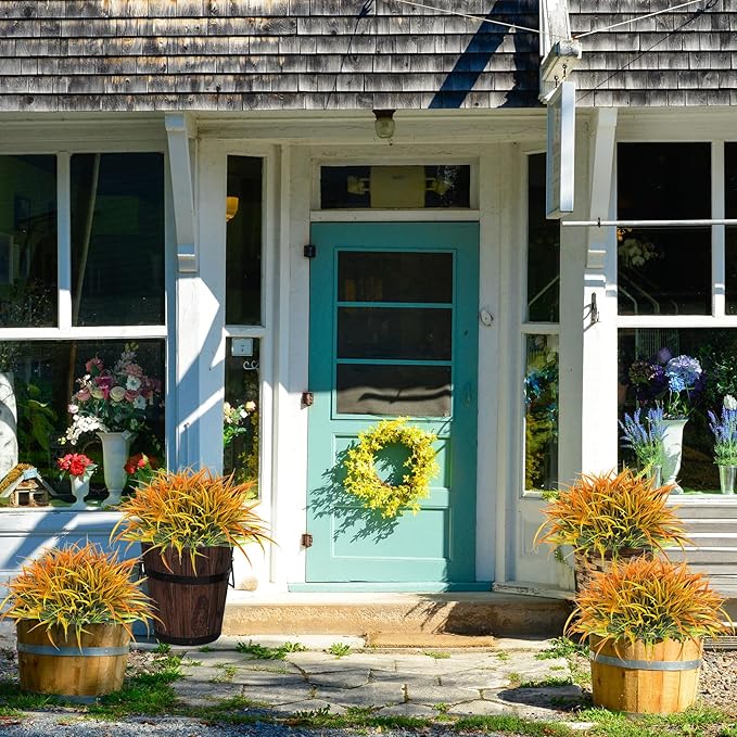 - Natural & Real Looking: The upgraded faux plants outdoor whether indoors or outdoors, can exhibit a similar appearance to real natural plants. This artificial grass can inject green and vitality into your room or garden, creating a comfortable atmosphere that allows you to relax