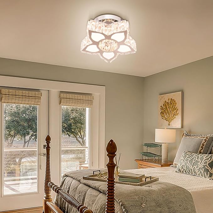 - Flush Mount Crystal Chandelier:Small crystal chandelier Dia 9.1 Inch,H 4.1 Inch, suitable for kids room girls room hallway entry way kitchen small room bedroom closet foyer.