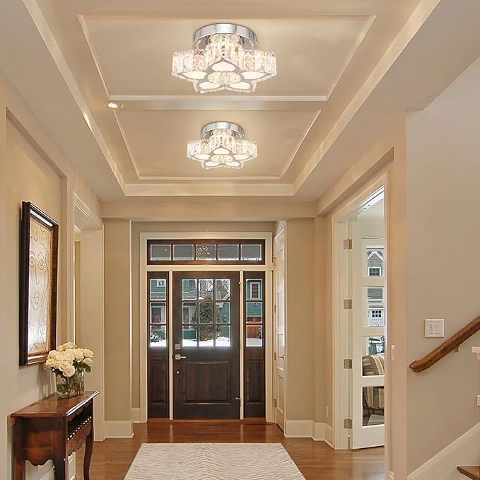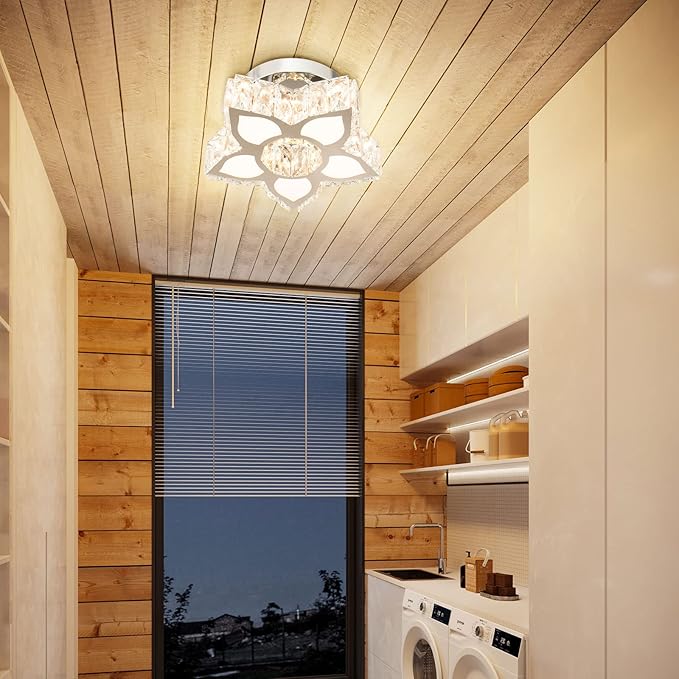 - 【Small Crystal Ceiling Light】LED chandelier light color: warm white. Made of high-quality stainless steel and K9 crystals with fine craftmanship, ensure this crystal ceiling light has a sturdy and long-lasting quality.