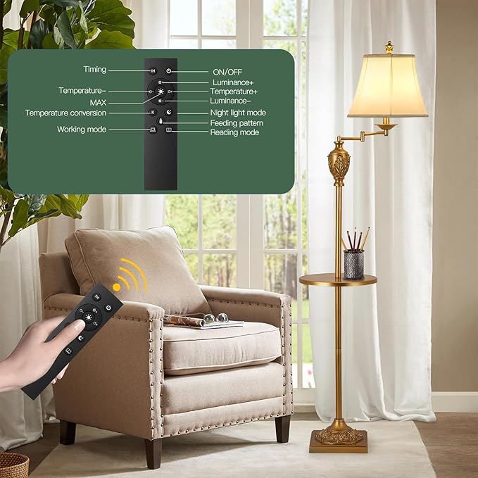 - Mutifunctional & 350° ADJUSTABLE SWING ARM – The brown floor lamp is 65 Inches Tall, which is the Ideal Height for Providing a Gentle Glow. It's simple to move the lamp to where it's required. Its extending arm enables you to change the length of the light.At the same time, there are stepless dimming and 3 color temperature switch, which can be easily controlled by remote control.
