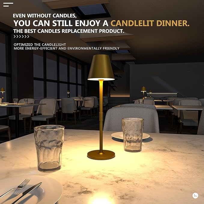LED CordlessTable Lamp,4000mAh Rechargeable Battery Desk lamp,3 Level Brightness Beside Night Light, Minimalist Design, for Couple Dinner/Coffee Table/Restaurant/Bedroom(Bronze 4PACK)