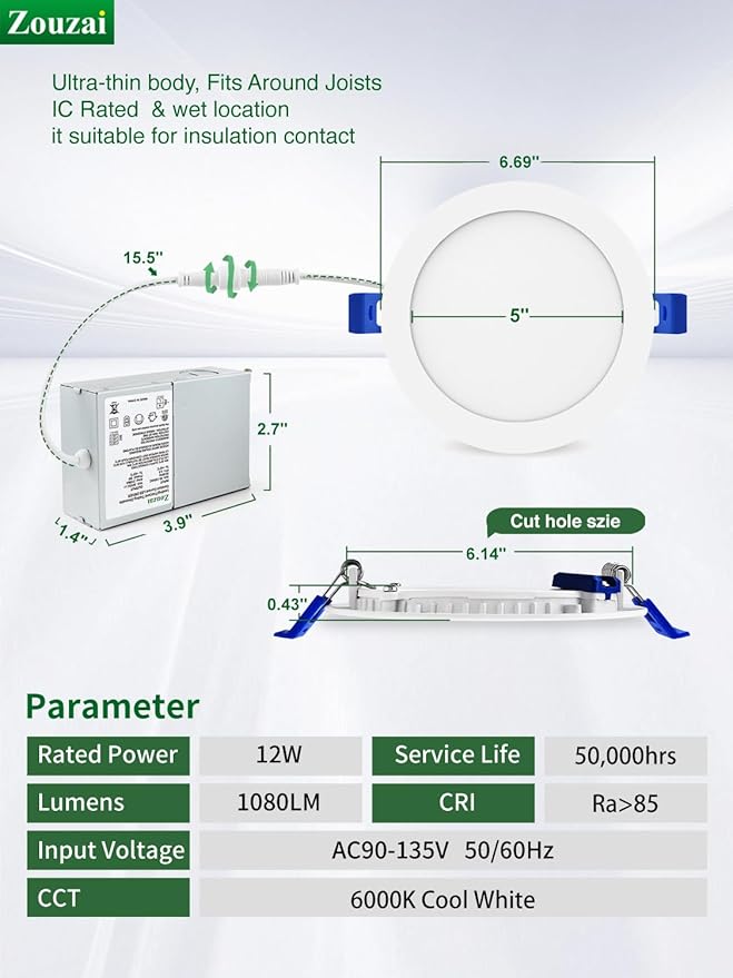 - ๐ใEasy InstallใThe low profile recessed lighting is suitable for retrofit and new decoration: Cut a hole in ceiling with 1:1 hole template; Connect the Jbox to the cable; Use spring clip to fix it on the ceiling. Hassle-free, the installation can be completed in minutes.It only requires as small as 2 inches ceiling spaces, fits various ceilings, and joists. Recessed can is no longer a limitation for your choice.