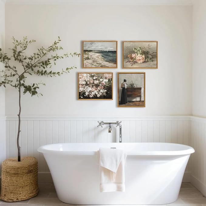 - 【Framed Wall Art Vintage】Featuring retro still life flower picture, the vintage flower decor captures the beauty and tranquility of nature, bringing a sense of wonder into your living space. The framed vintage bathroom wall art decor is ideal for farmhouse /French Country decoration, this artwork adds a rustic touch to your bathroom, bedroom, and living room, creating a serene and cozy atmosphere.
