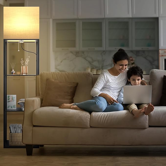 - 【Multi-functional Floor Lamp for living room】Floor lamp shelves, an excellent holiday gift and birthday gift for mothers, fathers, wives, husbands, children, and friends. Floor lamp with shelves, very suitable for living room, bedroom, reading room, office, library, kitchen, coffee shop, hotel, restaurant, etc.