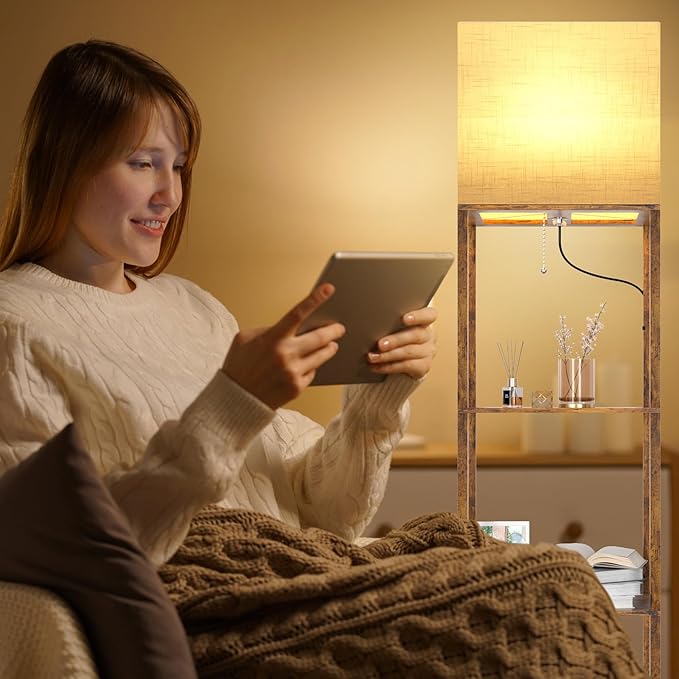 - 【Multi-functional Floor Lamp for living room】Floor lamp shelves, an excellent holiday gift and birthday gift for mothers, fathers, wives, husbands, children, and friends. Floor lamp with shelves, very suitable for living room, bedroom, reading room, office, library, kitchen, coffee shop, hotel, restaurant, etc.