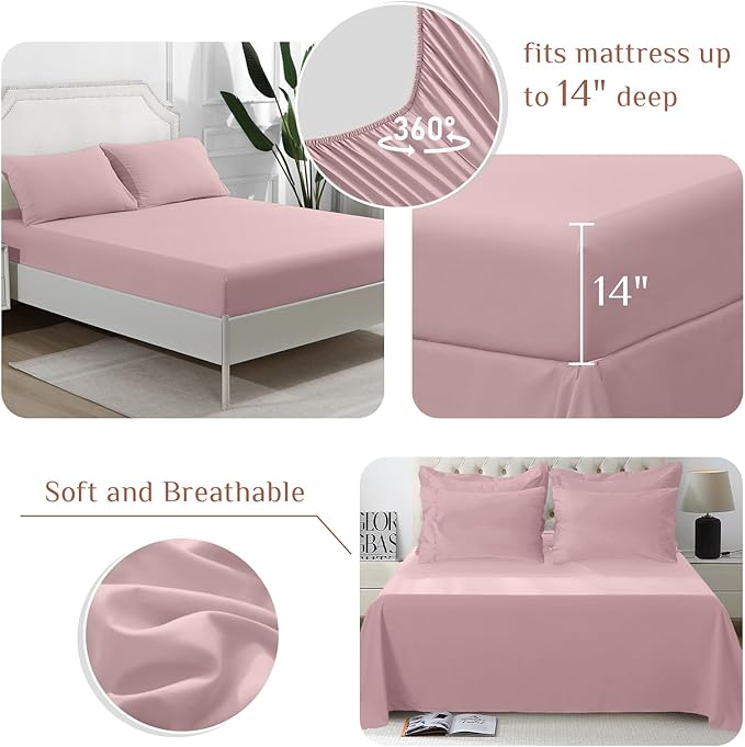 - Practical Design: Deep pocket elastic fitted sheet stays securely anchored on 10-14" mattresses, even with restless sleepers who toss and turn, while the envelope pillowcase keeps the pillow in place and make it easy to change