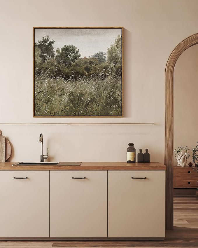 InSimSea Square Framed Canvas Wall Art, Large Decor Field of Oats Grassland Paintings, Nature Scenery Wall Pictures for Bedroom Living Room, Canvas Prints Vintage Country Decor 24"x24"