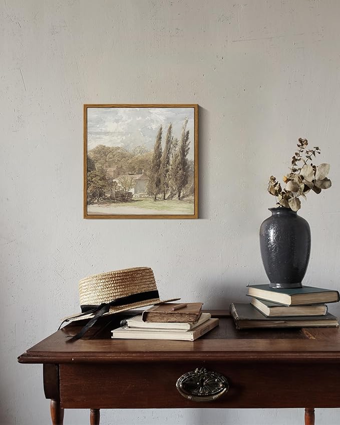 InSimSea Square Framed Canvas Wall Art, Gardens Classical Scenery Paintings, Rustic Gardens Wall Pictures for Bedroom Bathroom Living Room, Canvas Prints Artwork, Vintage Home Decor 10"x10"