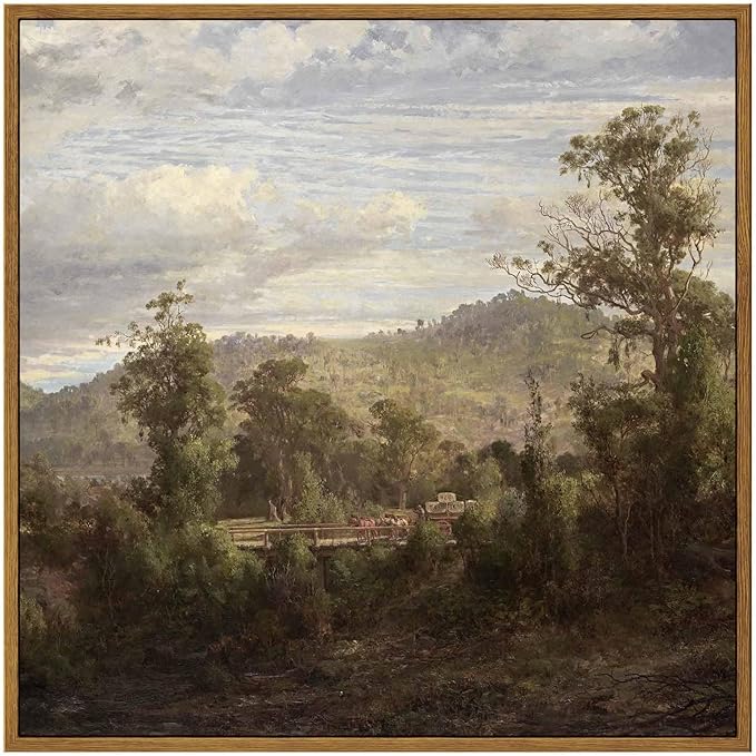 InSimSea Square Framed Canvas Wall Art, Vintage Nature Landscape Paintings, Retro Scenery Wall Pictures for Bedroom Bathroom Living Room, Canvas Prints Artwork, Home Decor 16"x16"