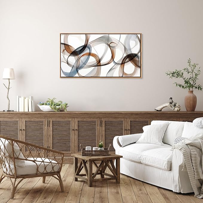 Framed Canvas Wall Art - Large Abstract art prints for Home & Office Decor - Brown Modern, Minimalist Wall Art Decor for Living Room, Bedroom Farmhouse Wall Decor Wood Frame 20×40IN