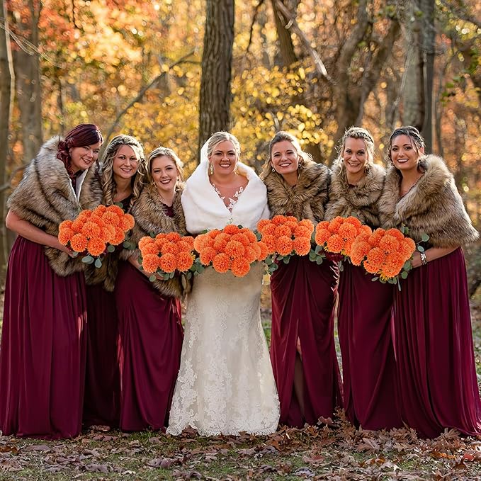 Hananona 12 Pcs Artificial Chrysanthemums Flowers Marigolds Ball Flower, Orange Fake Mums Silk Fall Flowers for Autumn Dia de Los Muertos Home Decor Day of The Dead Table Centerpiece (12, Orange)