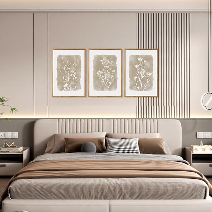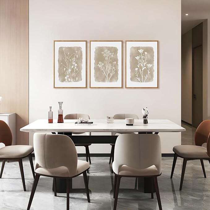CHDITB Botanical Farmhouse Wall Art Set, Framed Boho Plant Wall Decor, Neutral Minimalist Floral Wall Painting, Rustic Wildflower Canvas Art Prints for Living Room, Bedroom, Bathroom - Large 16"x24"x3